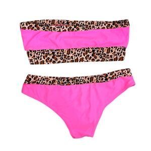 SHEIN Swim Neon Pink Leopard Print 2 Piece Bandeau Bikini Size Women's Medium