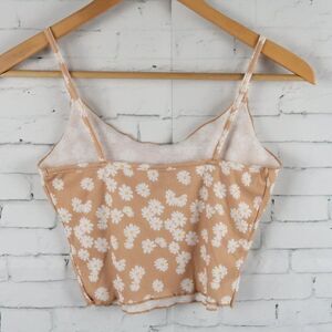 TAN WITH DAISY PRINT RIBBED CAMISOLE CROP TOP SIZE XS BY SHEIN PRE OWNED LIKE NEW CONDITION