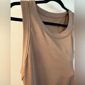 Tan tank top with ribbed detailing. Ideal for layering or wearing alone. Like New