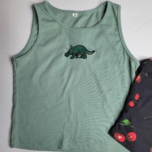 ONE GREEN CROPPED TANK TOP WITH DINO ON FRONT