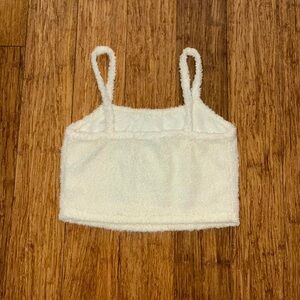 cream, fluffy, cropped, sleeveless, soft, plush, cozy, loungewear, winter, casual