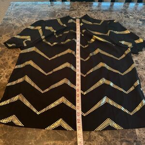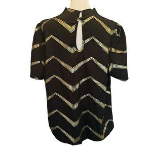 SHEIN Top Women's Size XL Back Button Striped With Gold Foil Detail