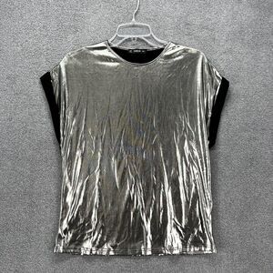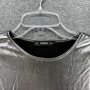 SHEIN Top Womens Small Silver metallic Disco party stretch