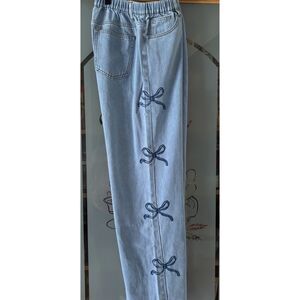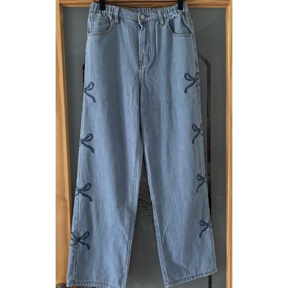 SHEIN Tween Girl Skater Bowknot Embroidered Washed Baggy Leg Jeans Teen 16 yrs.