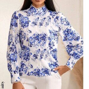 SHEIN Unity Floral Print Bishop Sleeve Mock Neck Shirt womens size medium