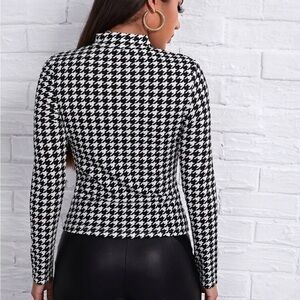 SHEIN Unity Mock Neck Houndstooth Top in Black/White