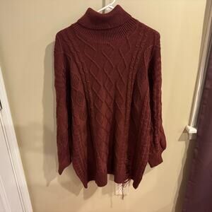 SHEIN Unity Rolled Neck Ripped Design Hem Cable Knit Sweater Size Large Great condition Burgundy, red, wine