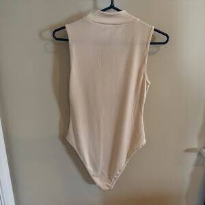 SHEIN Unity Summer Solid Ribbed Cream Sleeveless Bodysuit Size L