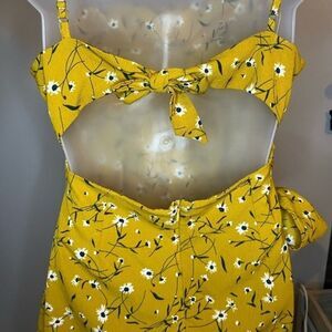 SHEIN VCAY Ditsy Floral Open-Back Mock Wrap Dress