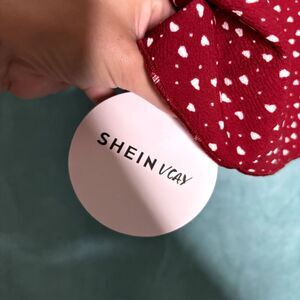 SHEIN VCAY NWT Heart Print Off Shoulder Frill Trim Knitted Bodycon Dress