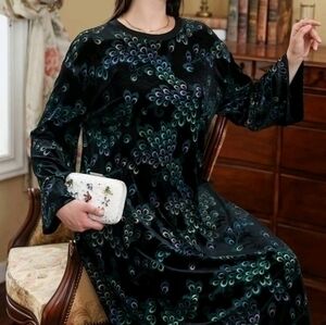 SHEIN VELVET PEACOCK PRINT MAXI DRESS SZ 4X