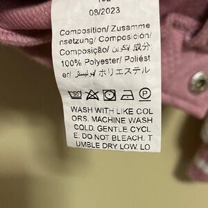 Stylish kids jacket with cable knit design. Features pink and white colors. Button-up front with letter detail.