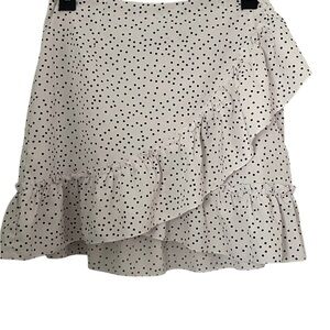 This chic mini skirt from SHEIN features a playful white and black color scheme with an asymmetrical wrap design. The ruffled layers add a touch of elegance, making it perfect for casual outings or resort wear. Its lightweight fabric ensures comfort and style throughout the day.