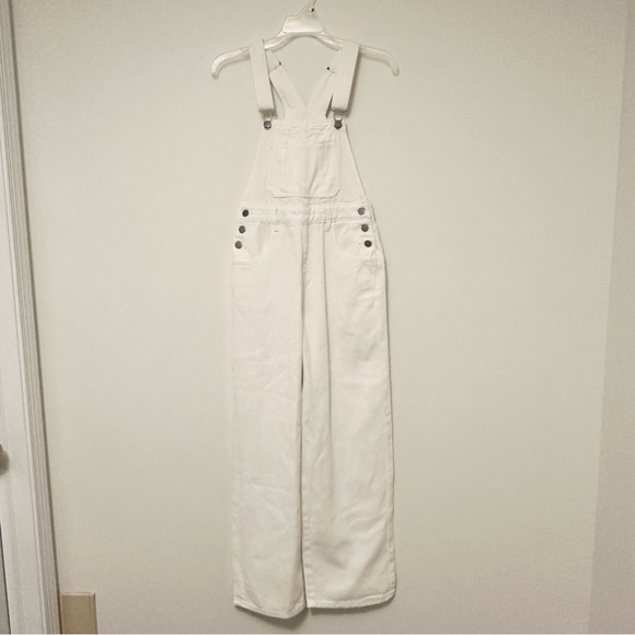 SHEIN White Denim Overalls with Adjustable Straps Women's XS size 2 Slant Pocket