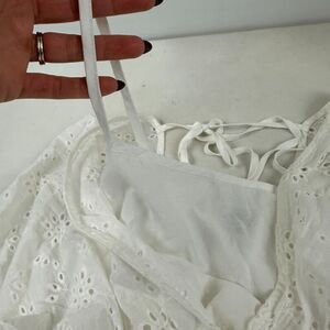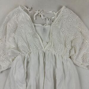 SHEIN White Eyelet Lined Mini Dress Beach Swimsuit Cover Up Elastic Waist Sz S