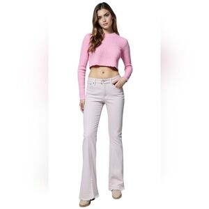 These white flare jeans from SHEIN feature a wide leg design with a high-rise waist, offering a chic and retro-inspired look. The distressed hem adds a casual, lived-in touch, making them perfect for a stylish, everyday outfit.