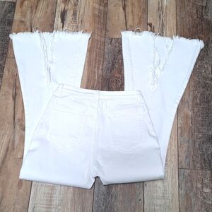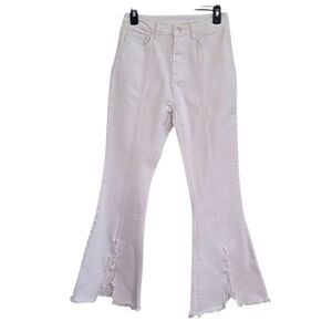 SHEIN White Flare Wide Leg Jeans with Distressed Hem Size Medium