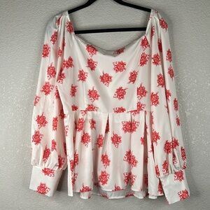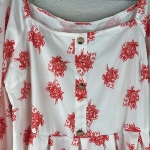 SHEIN White & Red Floral Flowy Boho Summer Casual Top Size XL