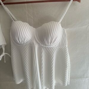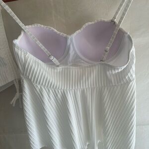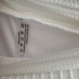 Elegant white bikini with ribbed texture. Features a flattering fit and stylish design. Perfect for beach days.