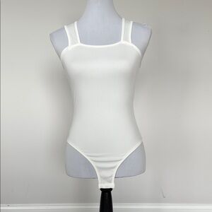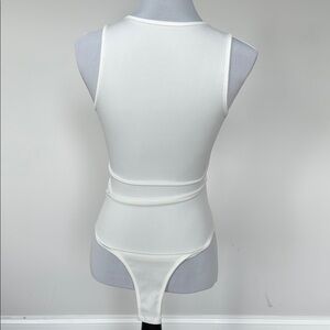 This is new and has never been worn. It does snot have the tags. Stylish white ribbed bodysuit. Perfect for any occasion.