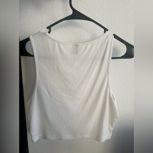 Chic and versatile white crop top. Ribbed texture adds style. Ideal for casual wear, you can wear it by itself or over another shirt depending on how you want to style it. It is brand new never worn.