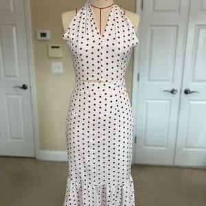 This elegant sundress from SHEIN features a ruched and ruffled design in a pristine white color, perfect for casual or resort wear. The sleeveless halter neckline adds a touch of sophistication, while the backless style ensures a breezy and comfortable fit. Ideal for sunny days, this dress combines style and comfort effortlessly.