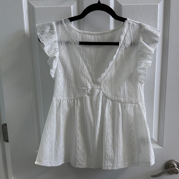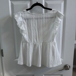 Chic blouse with delicate lace. Features ruffle sleeves. Ideal for versatile styling.