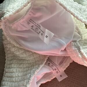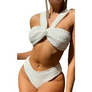 SHEIN White Textured Twist Front Bikini Set Hipster Bottom | Medium