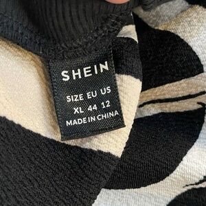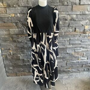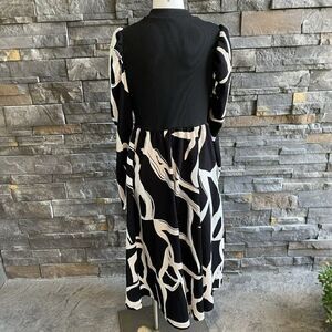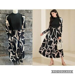 SHEIN Woman’s Dress MIDI Puff Sleeves Black Ivory Beige XL Flowy Stretch Trendy