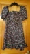Size medium (6) short dress in black with red flowers and polka dots by SHEIN. Bodice is pleated. Double ruffle hem at bottom, puff sleeves. Thin satin feel. Approx 32in length, bust 17in. zipper in back. Like new