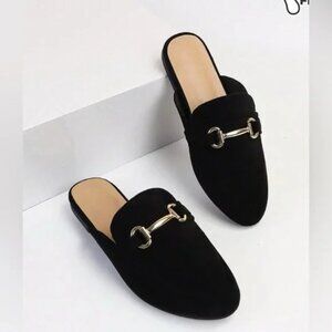 SHEIN Women Wide Fit Metal Decor Flat Mules - 9