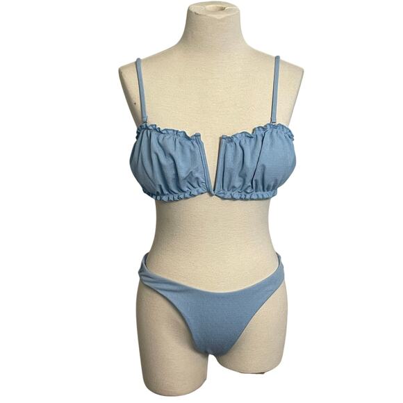 SHEIN Women’s Bikini Baby Blue Gathered Top Size Large