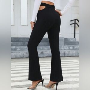 SHEIN Women’s Black Prive Cut Out Waist Textured Sexy Flare Leg Pants Medium