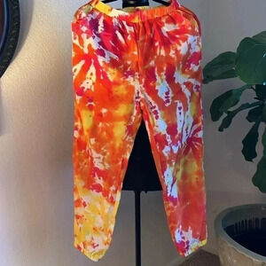 SHEIN bright orange, yellow, pink, purple, and white jogging workout track pants with elastic waist and ankle. BRAND NEW!! NWOT Size: Medium ***Model wearing similar pants***