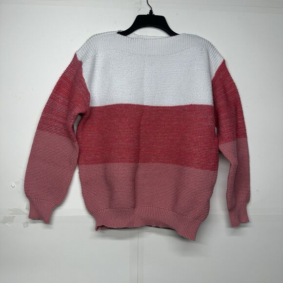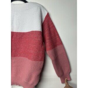 SHEIN Women’s Color Block Sweater Size Large Pink Red White Knit Pullover