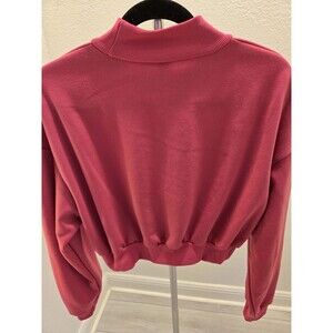 SHEIN Women's Cropped Mock Neck Sweatshirt Magenta Pink Boston Embossed Top NWT