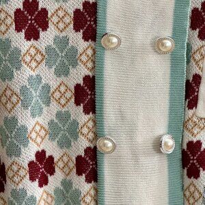 SHEIN Women's Geo Pattern Patch Pocket Button Front Knit Cropped Polo Top S NWOT