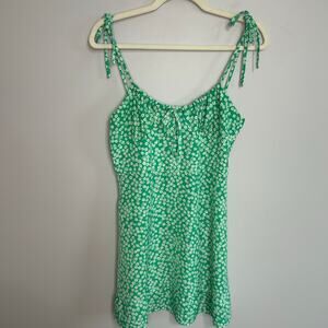 SHEIN Women’s Green Floral Spaghetti Strap Tie Sleeve Mini Sun Dress Size Medium