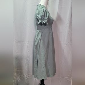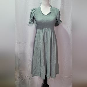 SHEIN Women's Green Smocked Short Puffed Sleeve Midi Dress Size Small EUC