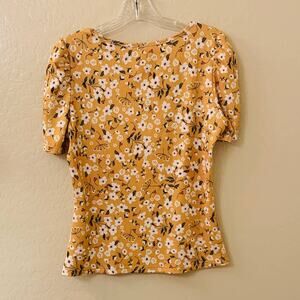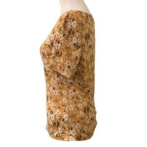 SHEIN Women's Mustard Yellow Floral Short Sleeve Stretch Top, Size Large