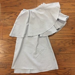 SHEIN Womenβs Off-The Shoulder Ruffle Strapless Blouse Blue White Large