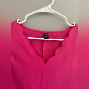 SHEIN Women’s Pink Dress SZ MD Floral Shear Long Sleeve Scalloped Neck Line