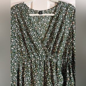 SHEIN Women’s Plus Size V Neck Green Floral High Low Dress Size 2X