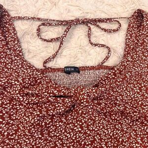 SHEIN Womens Red Floral Smocked Cut Out Tie Front Crop Top Bohemian NWOT Large