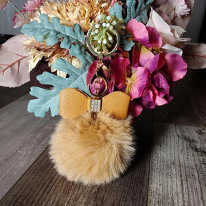SHEIN Women's Rhinestone Decor Pom Pom Charm Fashion Keychain