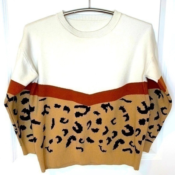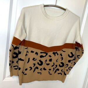 Women’s SHEIN White & Leopard Print Sweater Size XL