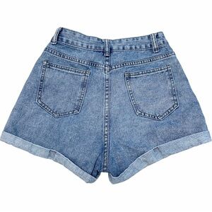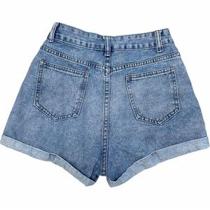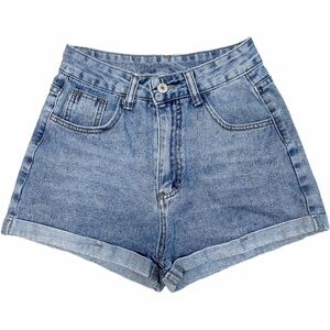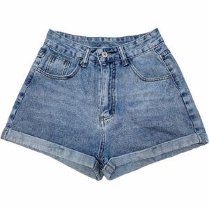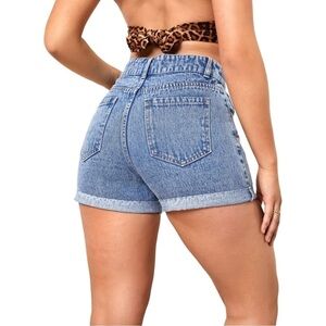SHEIN Womens Small Shorts High Waisted Denim Rolled Hem Zip Fly Button Blue Jean