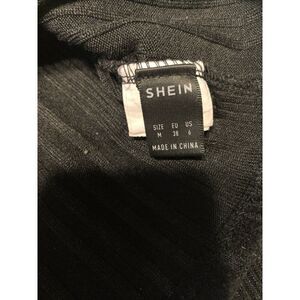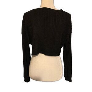 SHEIN Womens Solid Black Ribbed Crop V Neck Long Sleeve Sweater Top Medium