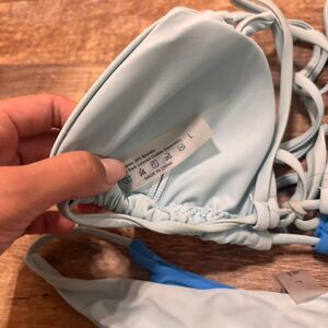 SHEIN Women's Vacation Blue Two Toned Tie Strappy String Beach Large Bikini Set