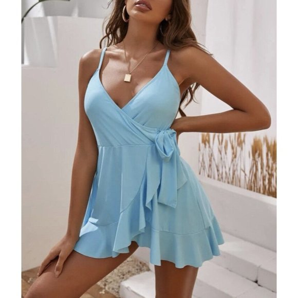 SHEIN Wrap Ruffle Knot Skort One Piece Swimsuit swim dress Women's Sz Large NWOT